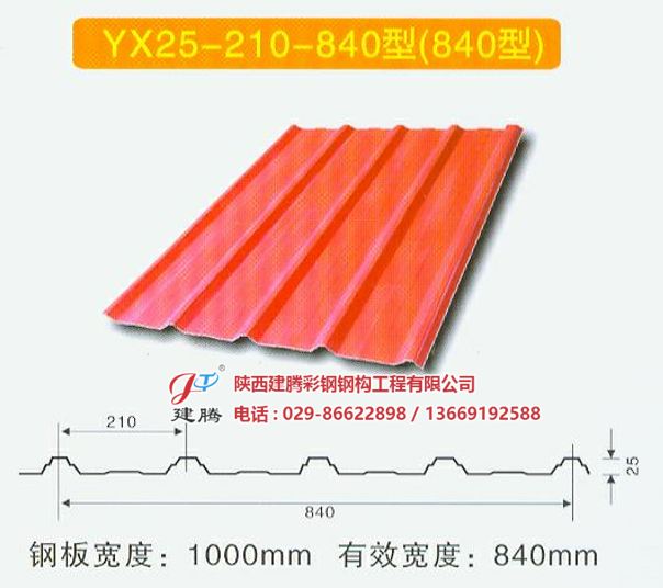 YX25-210-840產(chǎn)品的基板為冷軋基板,熱鍍鋅基板和電鍍鋅基板。涂層種類可分為聚酯、硅改性聚酯、偏聚二氟乙烯和塑料溶膠。彩鋼板的表面狀態(tài)可分為涂層板、壓花板和印花板,彩鋼板廣泛用于大型公共建筑、公共廠房、活動(dòng)板房、及集成房屋的墻面和屋面、交通運(yùn)輸?shù)刃袠I(yè),對(duì)于建筑業(yè)主要用于鋼結(jié)構(gòu)廠房、機(jī)場(chǎng)、庫(kù)房和冷凍等工業(yè)及商業(yè)建筑的屋頂墻面和門等。